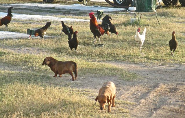 Lucky those chickens didn’t chase the girls. I could never let my dachsies run loose like that; I’d be a panic stricken mama.