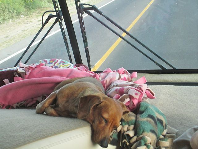 It was a quiet a day other than another fruit inspection. This time the fella wanted to come in. Just as he was coming in the girls started to bark….very very loudly! Just as the inspector was coming into the RV, one of his comprades pulled his leg as if he was getting attacked by a dog.!!!!!!!!!! He jumped and clutched his heart! Needless to say the inspection was a farce just as the joke that had been played on him!! He had a good laugh and I found out that avocados are okay but no fruits at all.