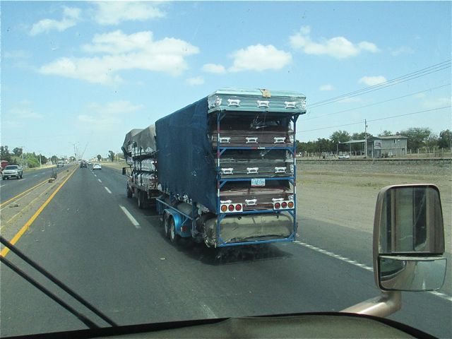We were on the road by 9:00AM. The first stop today was a new check by the PGR ( Federales ) about 60 km’s before the Sonora border crossing. They were mostly interested in the buses and their passengers. We were happy to have our own private bus.