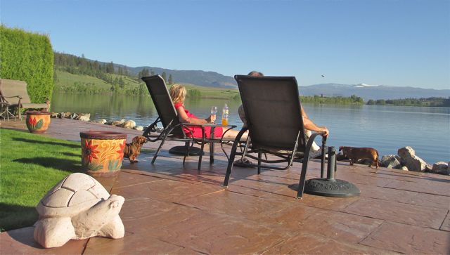 I did not know that Colin had taken this shot of us relaxing a few days ago. I was just going thru the camera right now to see what I had for you all. Looks just the same right now except Colin is working. However, I do have the glass of vino at my side.