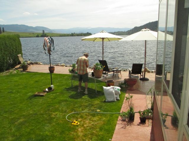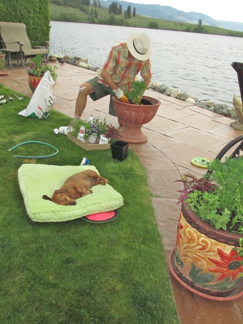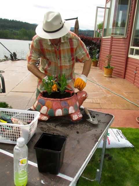 So in between booking new flights to Edmonton and about 1000 emails sorting things out we got our plant pots planted . Last year with the selling of the house and the building of this one we did not plant anything. It has been so very very hot here but the forecast is for cooler temps so I decided that Saturday was the day.