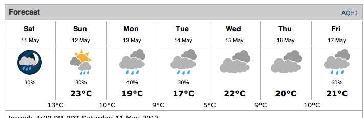 I am happy to say that while the weather here is less than stellar it will be perfect in Edmonton 🙂