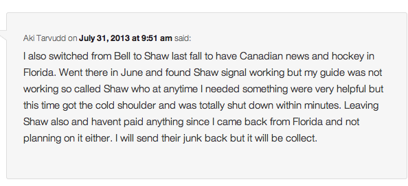 With regard to the Shaw Direct turning off their satellite service to the USA and to Mexico. This was a reply to a friend and fellow bloggers’ post.