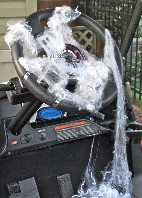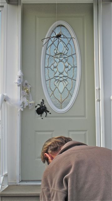 He doesn’t know who did it yet! It was all in good fun. We had about a dozen plastic spiders going up his front steps but I think the big dangling one would had got him as he went in his door.