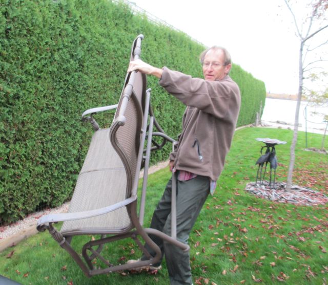Now that the shed has been loaded into our tow car, the HHR, we can put the final patio furniture away.