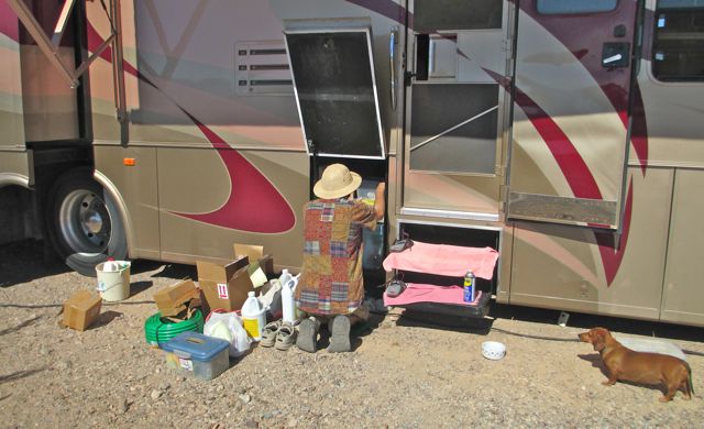 Back to the RV for breakfast for the girls and hot drinks for us....fake coffee. Not fun being allergic to caffeine. Val and John, the RV on the left, left for Yuma and we will meet them again on Monday.