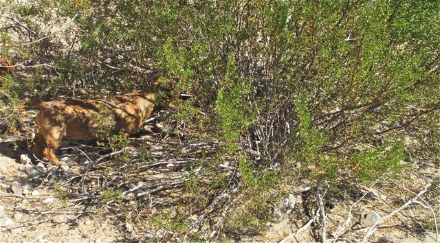 Carmeh spent the day hunting, either in this bush or in the wash behind the RV. We were always monitoring where she was, especially after hearing the coyotes so close last night.