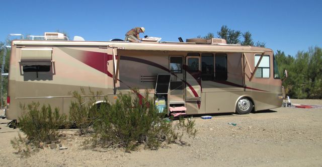 He tried everything you all suggested and non of it worked. I got on the computer and found an RV place here in Quartzsite that had one Fantastic Fan in stock. Then Colin checked with the Fantastic Fan folks who said that that fan would not work with our system but we needed a certain other system. Turns out that that part is a special order item and takes 4 weeks to get to us. We spent about 90 minutes on the computer using Skype to try and sort this out. We have a fantastic fan in the kitchen, the bathroom and the bedroom and we use all three. Finally after much back and forth with various people and the customer service folks at Fantastic Fans we sorted it all out. The only fan for sale here in Quartzsite will fit our RV but will not work with the wall thermometer which we do not use anyway. So we will go in first thing Monday morning and get the new fan or at least the guts installed. Fan cost is $200.00 and the install price is $50.00. Considering that the RV is 12 years old, it is well worth the price. Yes Fantastic Fans are guaranteed for life but we don’t want to wait 4 -6 weeks or more for parts and then having to pay to have them shipped to Mexico. After 12 years of being on the ocean we expect a certain amount of corrosion. To us this is a good deal and great peace of mind.
