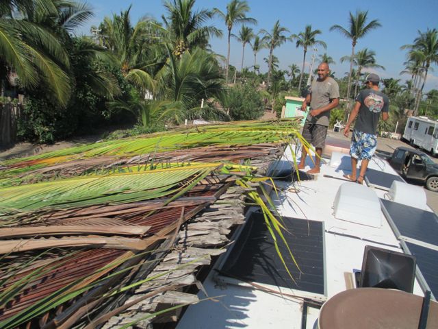 Last week we had the palapa repaired. Of course everyone who we had quoted suggested we needed an entire new roof. We said next year but just now we only want the two holes repaired plus a new layer of palm fronds. The fellow we hired finally arrived 1.5 days later, not bad by Mexican standards.