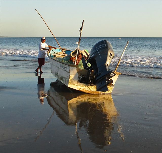 On an afternoon walk a few days ago we saw this fisherman getting ready to head our for a night of fishing. Notice the 2 light bulbs hanging on the back left of the panga. We often see these tiny lights bobbing in the distance and know that someone is working hard all night.