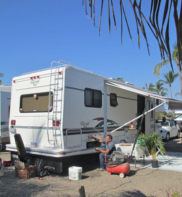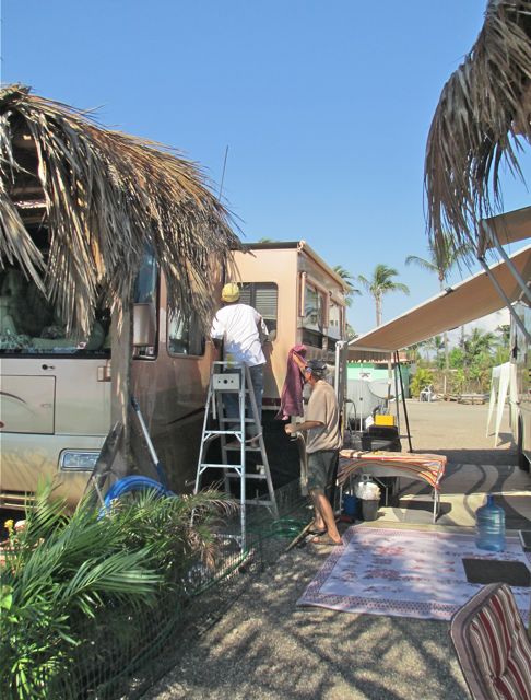 The top corner of this RV had been ripped open during the trip down. Francisco has it looking brand new.