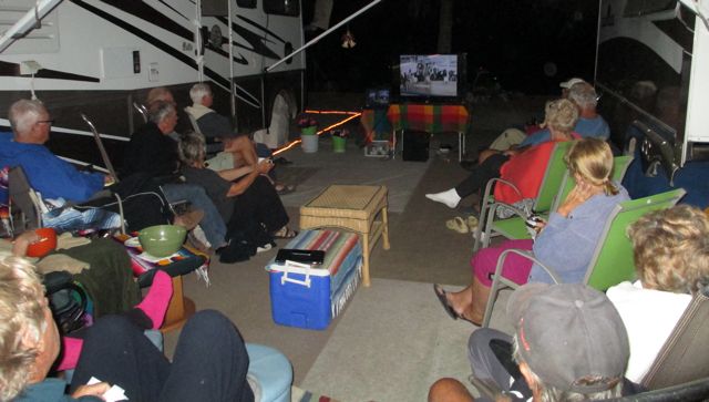 After sunset Sunday most of the RVers gathered to watch a slide show about South Africa. One of the couples had just returned from a three week trip there before driving here. Later there was a movie but we left. Time for a late dinner and some relaxation at our place.