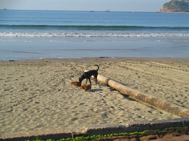 The water has been coming closer and closer to our wall but not quite yet. The girls make friends with all the beach dogs.