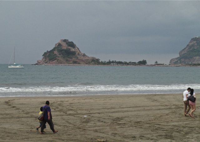 Yesterday, for the first time since we arrived here on Nov. 7th, the weather took a turn for the worse. We had clouds and wind and rain showers. That still didn't stop people from enjoying the beach nor Carol from the park here and her sister swimming in the ocean.