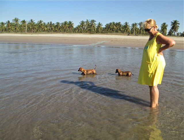 We waited and watched but it seemed to be losing energy. Our dogs were so good and kept their distance with only a word from us. We have been a part of many turtle releases while in Acapulco in years past and so it seemed natural for Colin to pick this little one up and place it in the ocean.