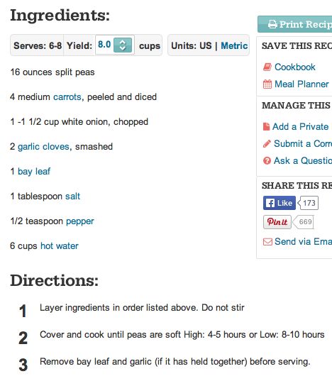 Yesterday morning I made Vegetarian Slow Cooker Split Pea Soup gleamed from the internet.