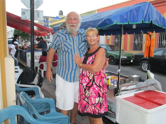 We were meeting a couple for dinner and we stopped for a drink as we were early. While scanning the crowd watching for our dinner partners we were greeted with a "Hello Contessa". Meet Hannelore and Peter who haven't been in town quite two weeks yet. They are friends of friends from Kamloops and of course they read this blog. We were all delighted to finally meet. We look forward to your visit to the Isla and spending more time with you.