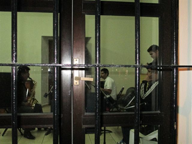 Our next stop was to drop off my camera for repair and on the way back to the Plazuela we heard music and just around the corner we peeked through the window into one of the music schools classes. Just a fun shot.