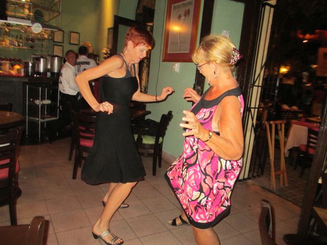 When Colin got tired of dancing I continued on with Laurie who was sitting with a large group next to us. As our table was furthest back from the action we just danced inside the restaurant. Much more space to do our thing. I can't believe I was doing the twist.