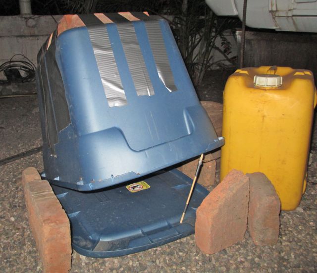 So this year we knew we had to catch it sooner than later before it took up residency in our RV. Colin devised a trap.