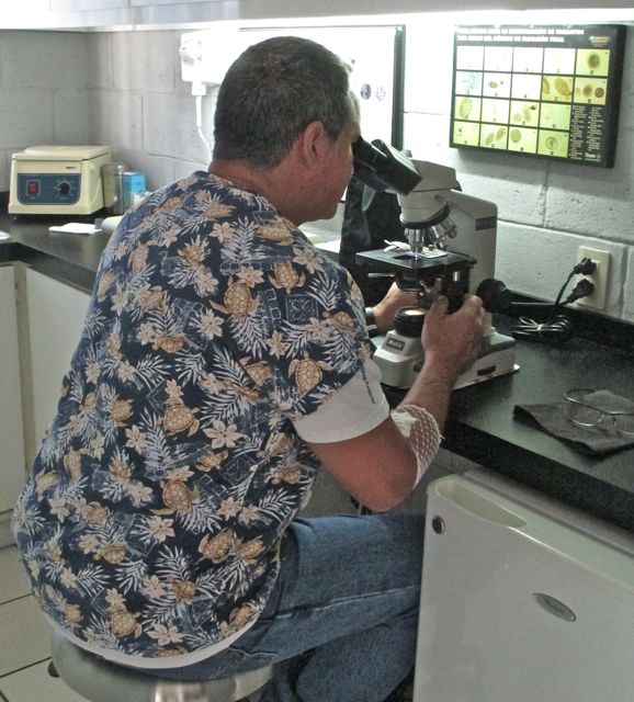 This recent trip to the vet goes back to early February when we took Caeli to the vet where we were told she had parasites. There were 2 visits to the vet in February for this problem. About ten days ago we again saw blood and what looked like little worms on the bed sheets. We gathered a few samples and this time we went to a different vet, Dr. Marco Antonio Cardenas, used by many gringos here in Mazatlan. We still like our first vet, Dr. Rafael but felt we needed a second opinion.