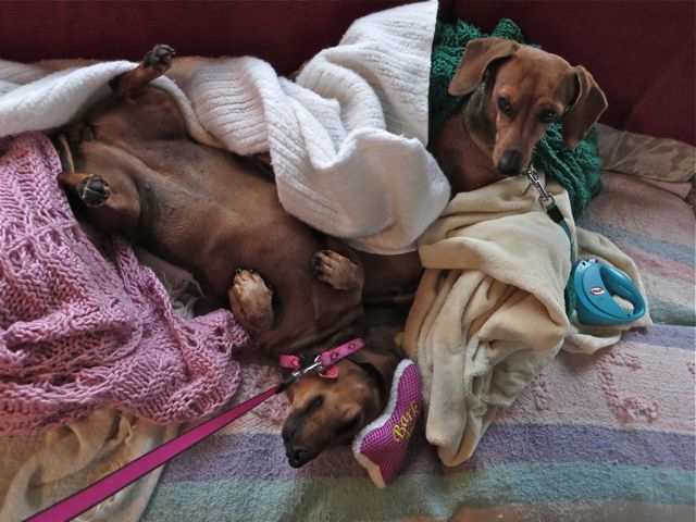 Take Care All.. hope the babies stay warm or get used to it. Luci also has no tolerance for coldness or the wet 🙂 I have many times had to be out holding an umbrella over her, while she did her thing when we were in pouring rain in Florida!!!