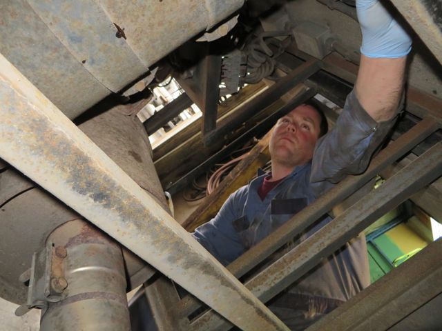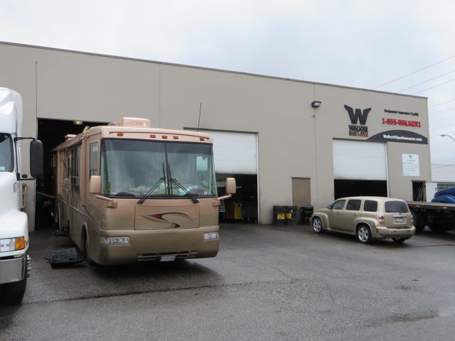 Walker Heavy Duty is in Delta and deals primarily with trucks. We started using this company 13 years ago when we bought this diesel RV new and they know it very well and we trust them plus they are a bonafide inspection facility. So when we moved to Kelowna several years ago we just arranged to do our annual maintenance with them on our return home each spring. We have had occasion to call them while on the road in Mexico and they always have time to help us. This is a heavy duty shop that you are allowed to walk around and talk to the senior mechanics working on our RV. Colin has picked up a lot of great information from these fellows. Maintenance is crucial to the running of your RV. Eric, our RV tech from Mazatlan, suggested we get the belt tensioner checked and sure enough it needed replacing. Good call Eric.