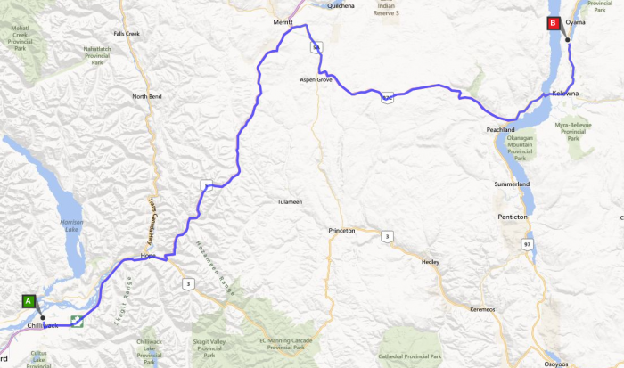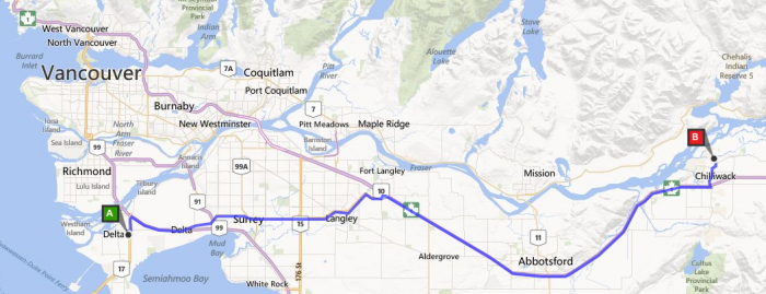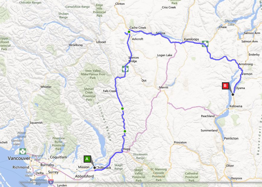 It is 100 miles longer and will take 2 hours longer but we will take the Fraser Canyon route and avoid the snow and the kicked up gravel.