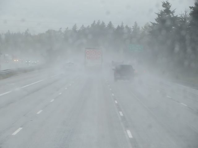 When you can’t see in front of you I find it very unnerving. You could barely see in front of you. We followed that Target truck for a long way changing lanes when he did. It was nice to have a guide. Meanwhile Colin was happy that all the salt from the ocean was being cleaned off the RV from top to bottom.