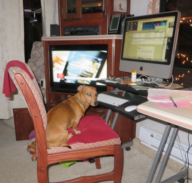 Came back inside to find Carmeh sitting on my computer chair. She is not supposed to jump but it was my fault for not pushing the chair under the desk. I have no idea why she wanted to be up there.