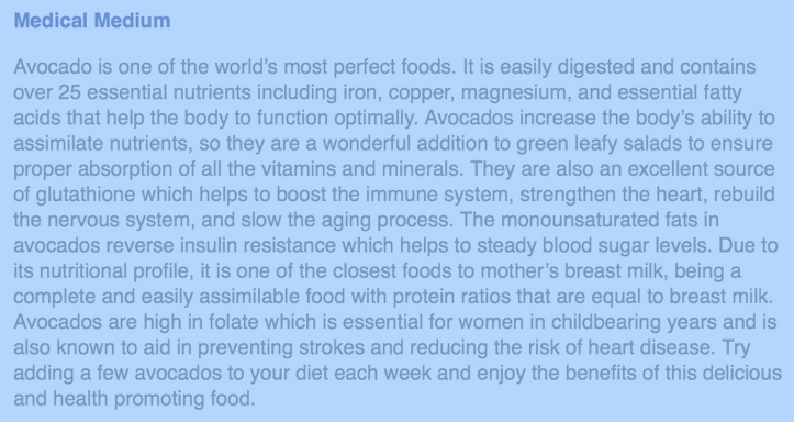 Thanks to blog reader Sandy for sharing more info on the benefits of avocados.