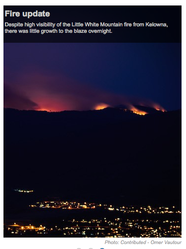 Yes that is the mountain we see out our window. I watched it all afternoon. The irony of it, is that Thursday afternoon was our first smoke free period in five full days. We watched the fire grow to 30 hectares and now it is at 194 hectares. During the evening we could see the fire glow while we sat in our living room. This particular fire is not near any homes or structures.