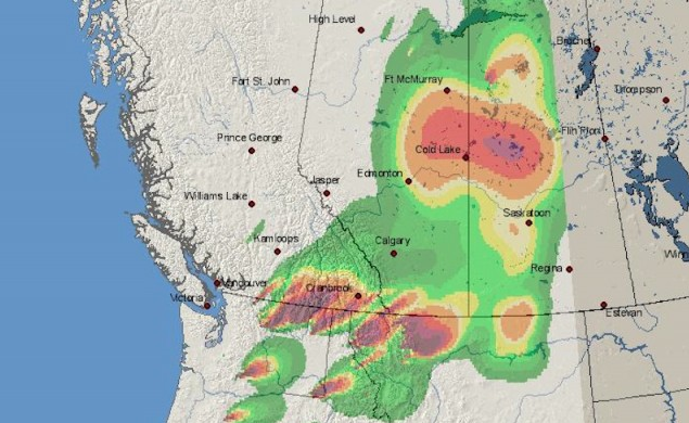 UPDATE ******* Rae made a comment about getting smoke two Provinces over. Here is the latest info on how far reaching the smoke is. We are located just a bid to the left of Cranbrook and North a hair.