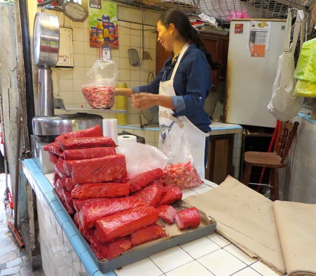 So many sites at the mercado/ market. I loved the rich color of this smoked marlin.