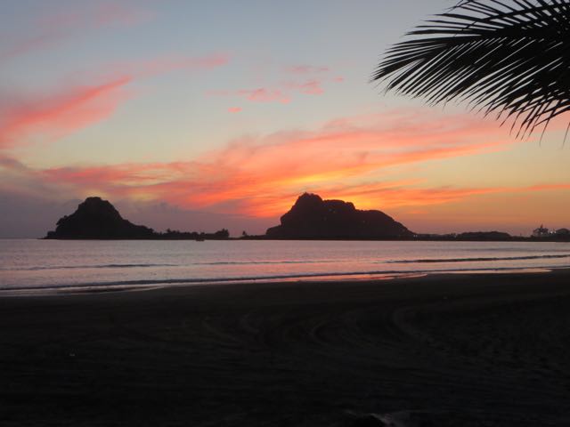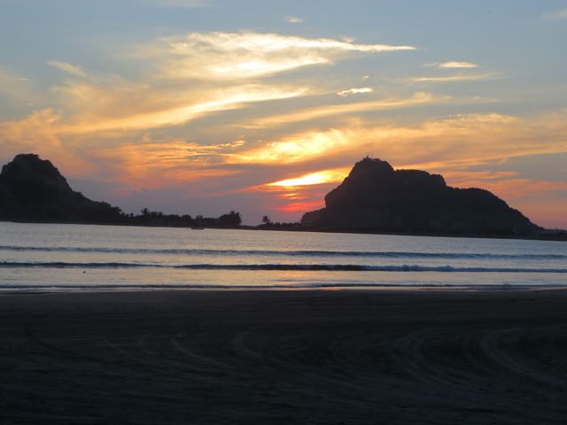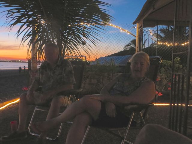 Not  a good photo at all due to the low light but enough to make out this great couple.  It seems that they are here in part due to my photos of the Isla as well as my blogs about the area.  They are very familiar with Mexico having traveled to Puerto Vallarta for many years.  However this is the first year that they have RVed down.  Welcome to the Isla my friends.  They had quite the day yesterday  First off they were extremely brave by driving into Mazatlan yet again down the road and actually dealing with the big city.  They did have some direction/location issues but what affected them most was that their car broke down, not once but twice.  Needless to say I was rather concerned that they were so late arriving back here on the Isla but they did get back just as it was getting dark 🙂