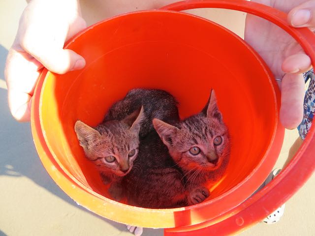 This couple were left with a ‘surprise” on their patio this particular morning. They did go up and down the beach looking for potential kitten parents.