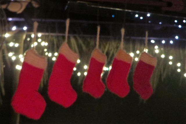 The stocking for the 5C’s ( hand knit by me ) are ready for Santa.