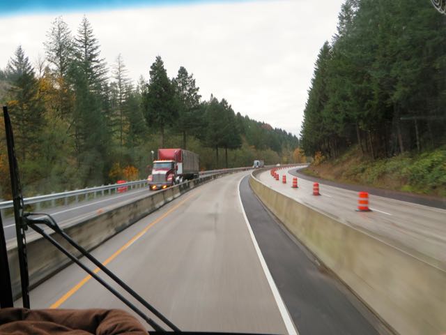 Somewhere north of Roseburg we encountered road construction. Colin commented on what would happen if we had a tire blow out or our engine died? Seriously at this point and for several miles I5 was only one lane in either direction. However would a tow truck reach our RV to tow us, which has happened in the past? Or a tire truck to change a tire which we could not do on our own? This also has happened in the past. There was no place for us to pull over because of the concrete barrier on both sides, not anyway for anyone to get to us to assist us. Those concrete barriers would have to be removed. In Mexico they have removable plastic barriers, much more logical. Seriously do you think no one has ever had a breakdown in a situation like this? For certain had we had a problem, we would have shut down I5 for hours and hours!