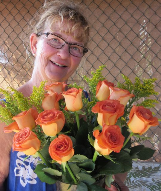 Just as I sat down to relax in the lounge chair with a book and a glass of wine late this afternoon, I was surprised with a delivery of a dozen roses. A gift from the owner of the Tres Amigos RV Park, David Perez.