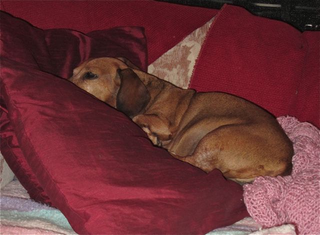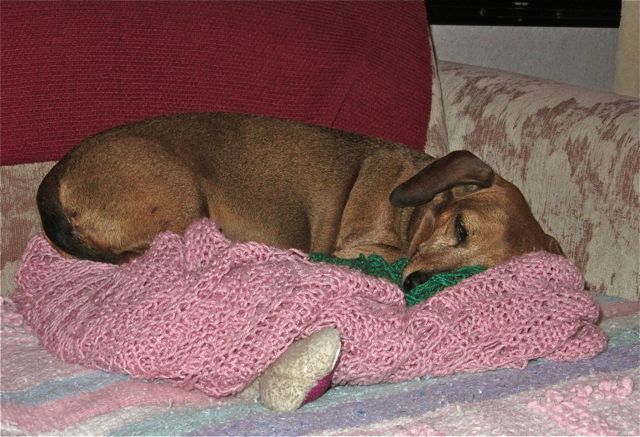 Here she is at the other end of the sofa but this time resting on two blankets.
