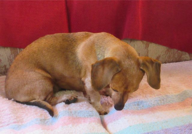 Carmeh in pain from her pancreatitis. This is what is called the prayer position. Her head is bowed in pain. Fortunately we haven’t seen this too much of late.