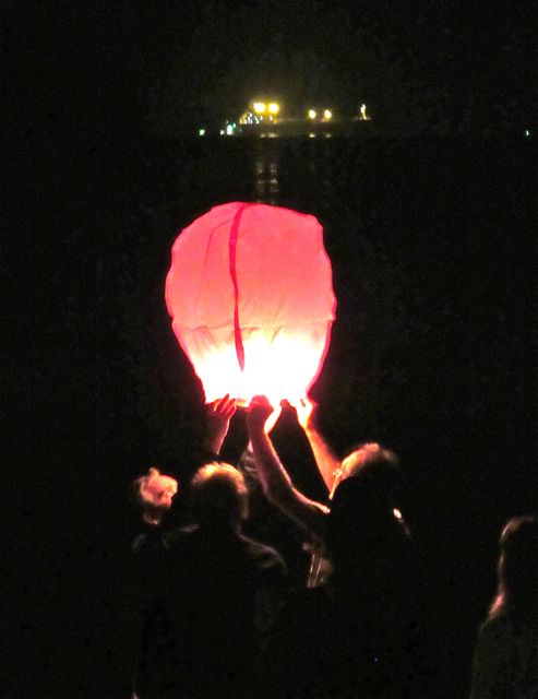 Juan & Colin are lighting the floating sky lantern, one of Juan’s favorite things to do here on the Isla. We only have three lanterns left, one for each subsequent visit. They aren’t good for the environment so we aren’t going to get anymore. The lights above the lantern are a ship way out on the horizon.