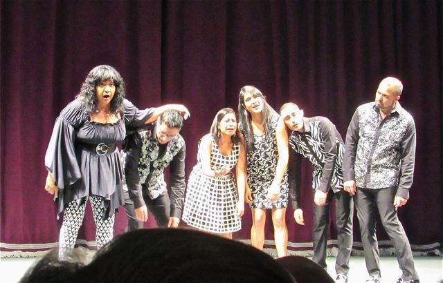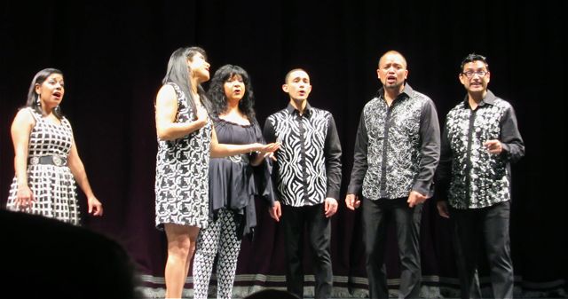 The group was brilliant. They used their voices to create the sounds of instruments and they were also very dramatically talented. This photo depicts the song Copitas de Mezcal…..a drinking song. So very well done. They also performed two of my favorites, Besame Mucho and In the Mood. What a great show.