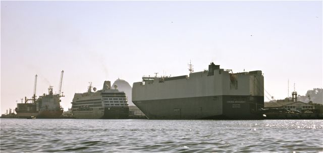 As we crossed the shipping channel back to the Isla, we saw how busy it was, a smaller cruise ship berthed between a freighter and an immense car carrier.