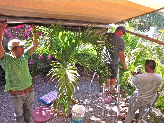 It was also the day that Eric came to put our repaired awning back on. We did have to move our RV off our site from about noon till 5PM, somewhat unsettling considering the circumstances.  We had to do the move as the palapa prohibited our awning from being put out.  It took a great deal of time and effort but Eric did get the job done as well as a few other small to do’s on the list.