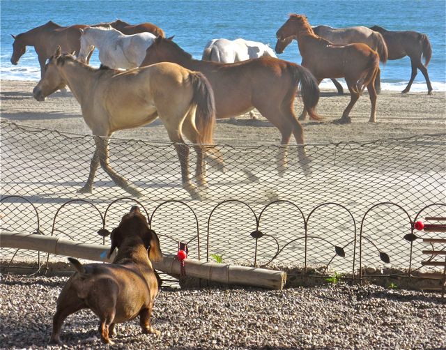 Caeli got in her last bark fest at the horses happily heading home down the beach.
