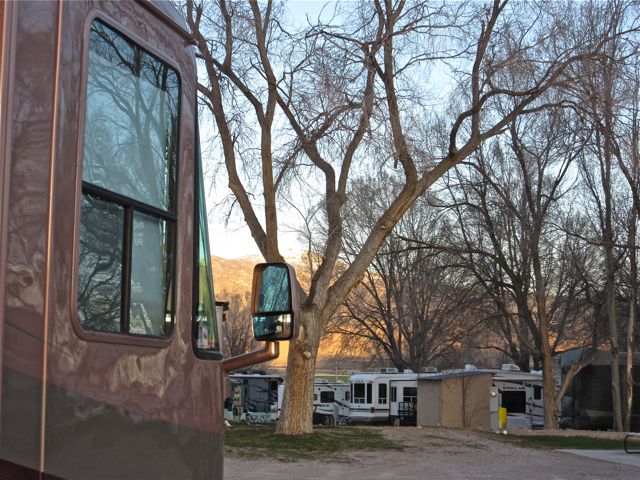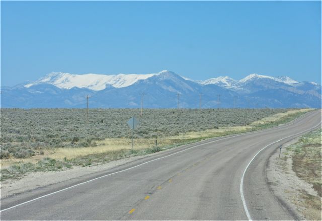 We spent Wednesday night in Ely, Nevada where we have stayed many times in the past. It was only a 254 mile drive but I had ordered some things from Amazon so we did have to stop and spend the night. I was tying to show the snow on the mountain above the mirror……
