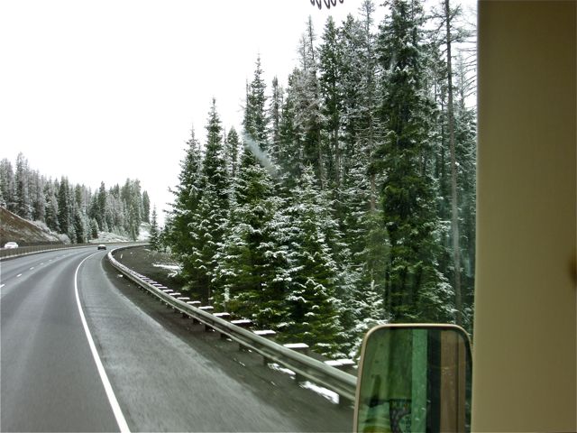 Just a few miles later the snow became more intense. Not only was it accumulating on the side of the road but up on the hillside.