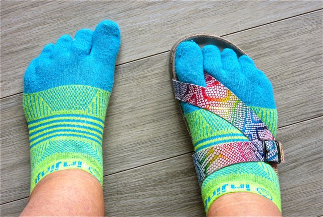 Thanks to a good neighbor here I now have some borrowed socks to keep my feet warm. I do not own any closed toe shoes.  I love these toe socks and have ordered two pair for myself.  They are perfect for my Mephisto sandals and my walking shoes.