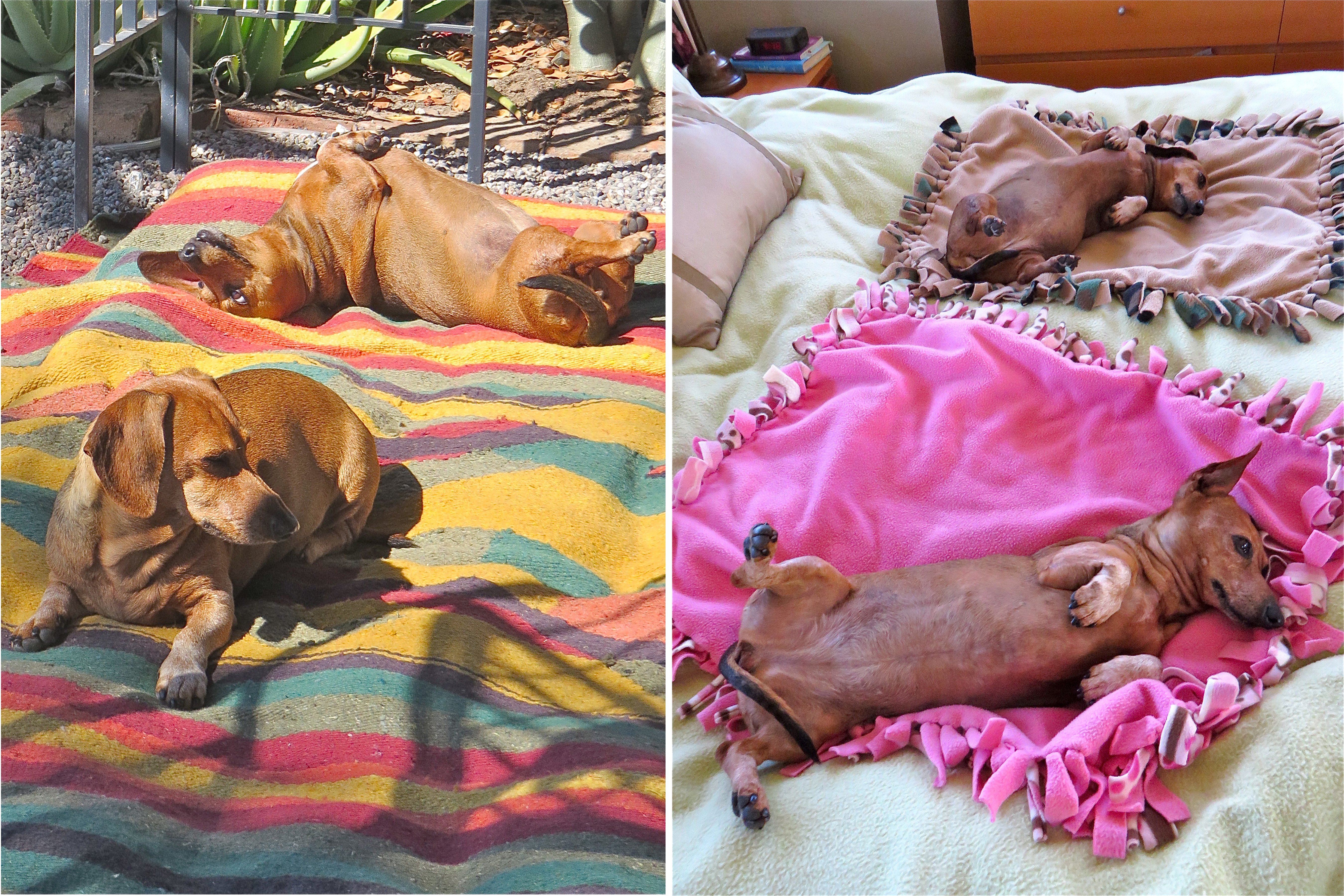 Caeli on the top and Carmeh on the bottom. Mexico on the left and our bed here in Kelowna ( where they liked to hang out over the last year ) on the right.